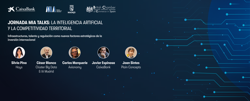 El Clúster Big Data & IA Madrid participará como invitado en la mesa redonda “IA, talento e inversión: los nuevos determinantes de la competitividad territorial”, en la Jornada MIA Talks de Madrid Investment Attraction, un encuentro organizado conjuntamente por el Ayuntamiento de Madrid, CaixaBank y la British Chamber of Commerce in Spain. Esta jornada estratégica reunirá a representantes institucionales, empresas tecnológicas, entidades formativas e inversores para analizar los factores que están redefiniendo la competitividad de las ciudades en la nueva economía digital.