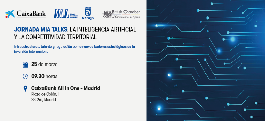 El Clúster Big Data & IA Madrid participará en la mesa redonda “IA, talento e inversión: los nuevos determinantes de la competitividad territorial”, un encuentro organizado por el Ayuntamiento de Madrid, CaixaBank y la British Chamber of Commerce in Spain. Una sesión estratégica que reunirá a instituciones, empresas e inversores para analizar cómo la inteligencia artificial, el talento y la inversión están configurando el futuro competitivo de las ciudades, y en la que el Clúster aportará su visión y experiencia en el desarrollo del ecosistema de datos e IA en Madrid.